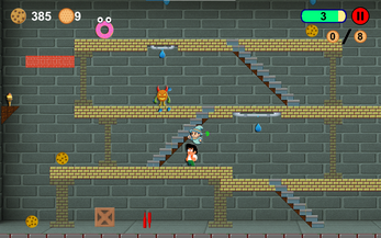 Fight enemies and avoid traps to collect the biscuit, defeat the dragon to win the one you risked for.